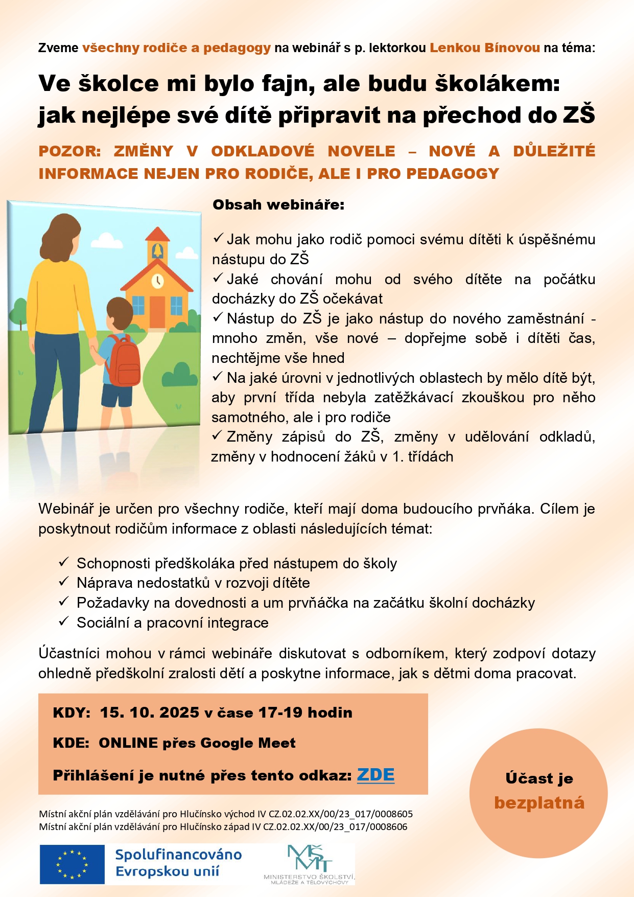 Jak nejlépe své dítě připravit na přechod z MŠ do ZŠ – webinář