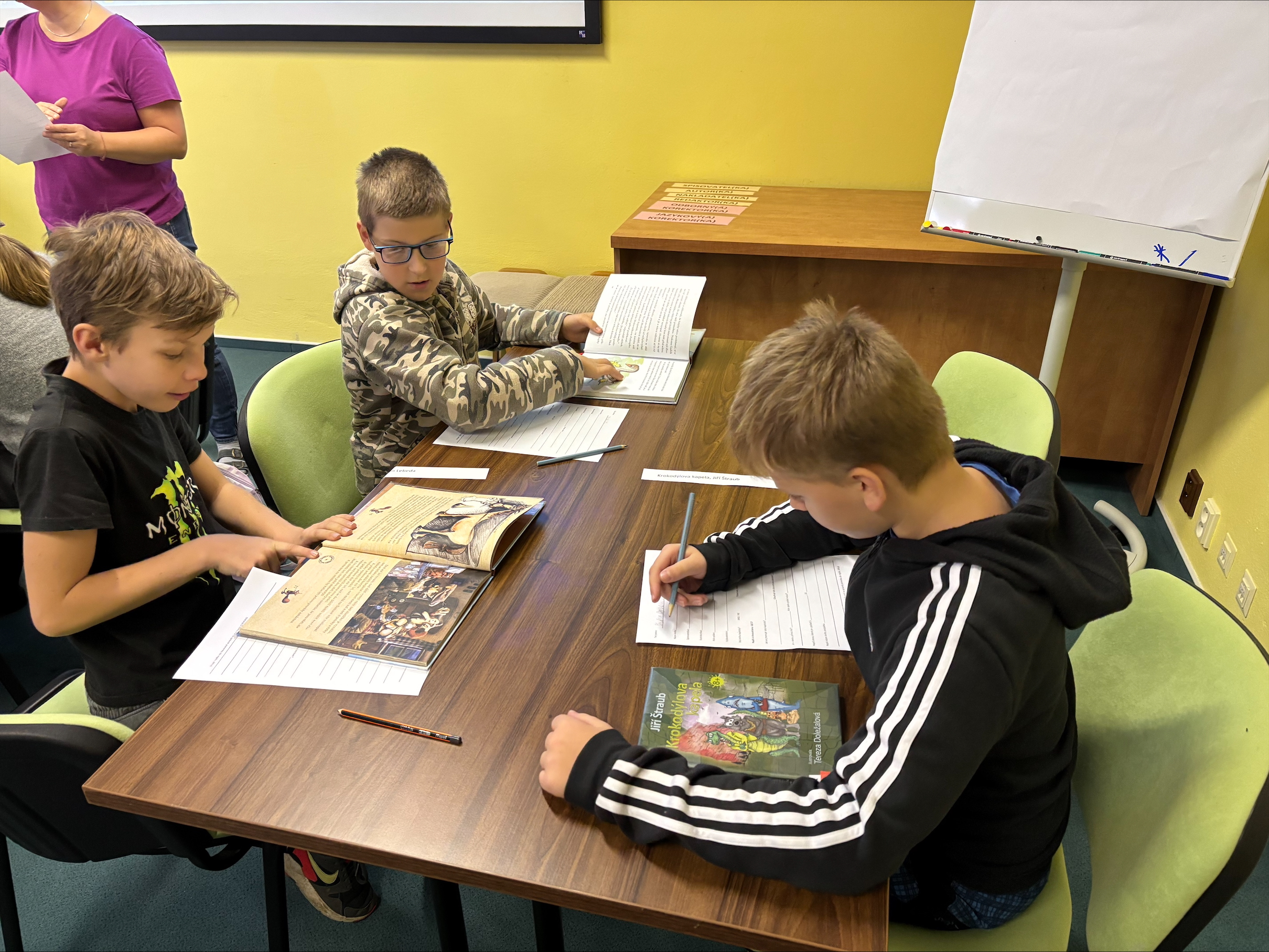 V úterý 26.11. listopadu vyrazili žáci 3. třídy do Knihovny Petra Bezruče v Opavě. Hlavními postavami besedy se stali taky třeťáci, Mach, Šebestová a jejich úžasná třída. Paní knihovnice měla připravený program s mnoha aktivitami. Všichni se zapojili do čtení, povídání, vyhledávání rozdílů, skládání textu nebo obrázku, zpívání i malování. Na rozjímání tak nebyl vůbec čas. Věřím, že po této lekci už hlavní hrdiny pana spisovatele Miloše Macourka a ilustrátora Adolfa Borna všichni bezpečně poznají a ke knížce nebo pohádce se vrátí. Moc se nám líbily nádherné prostory knihovny. Nejvíc pohled z balkónu do obřadní síně s barevnými vitrážovými okny a hra na varhany, které jsme měli možnost slyšet.