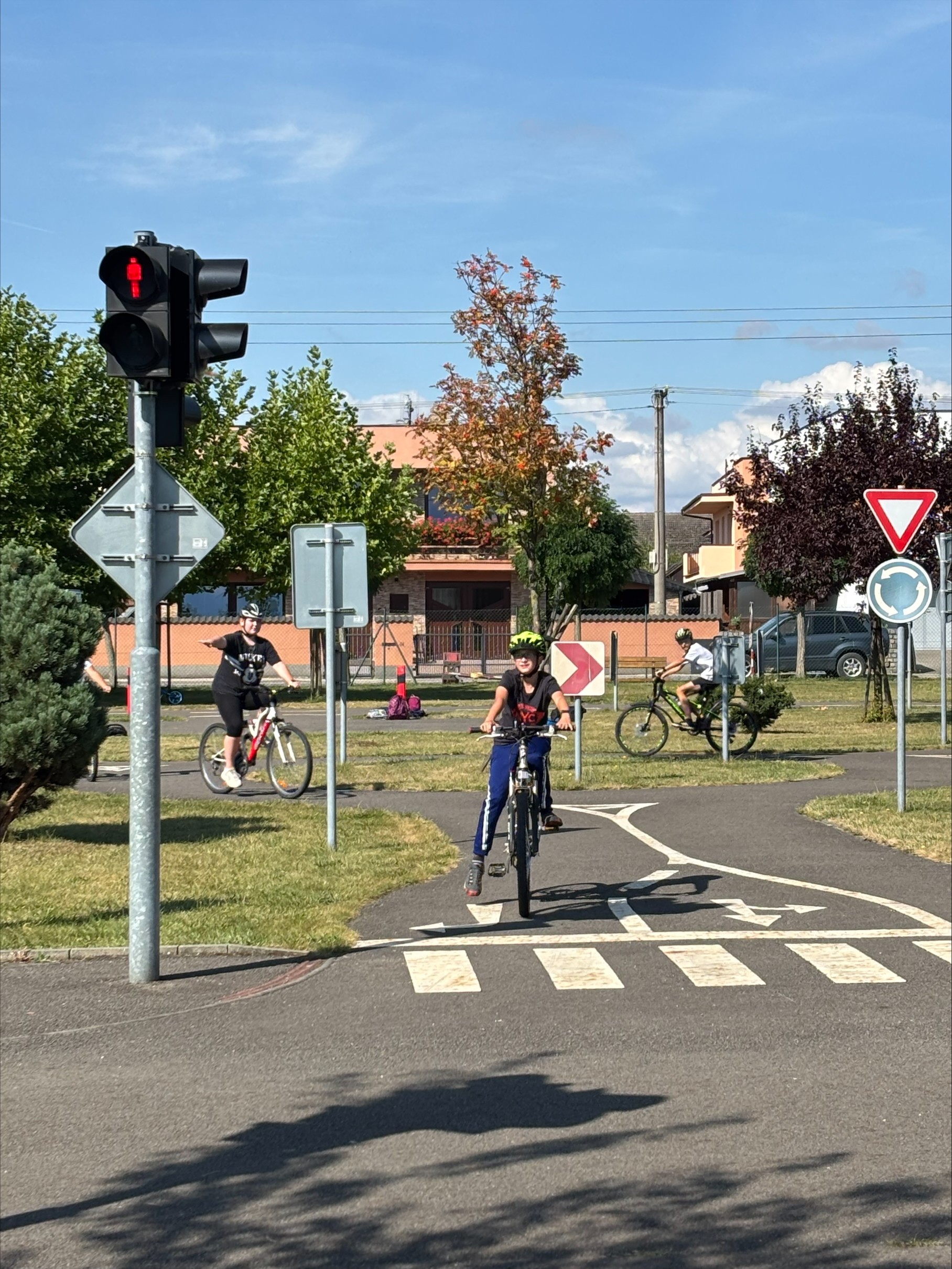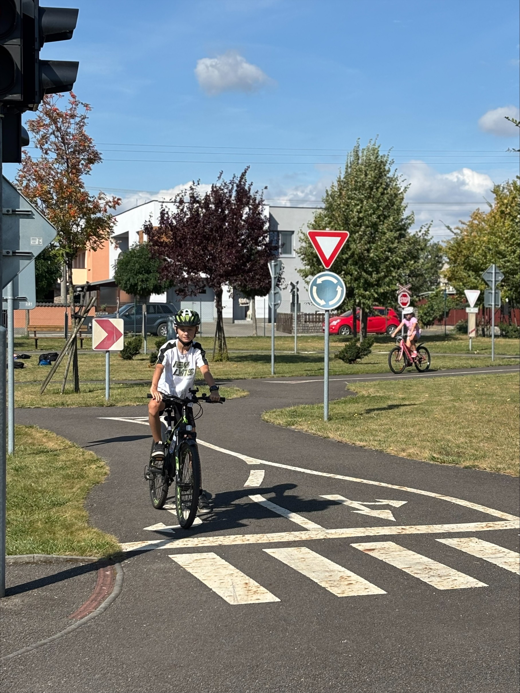 Dopravní výchova patří mezi témata, která mají pro žáky velký význam. S žáky 5. třídy jsme si ji vyzkoušeli přímo v praxi. Vydali jsem se na kolech na dopravní hřiště do Malých Hoštic. Během cesty jsme si připomínali základní pravidla cyklistiky – jízdu vpravo nebo správné znamení rukou při odbočování. Na dopravním hřišti jsme si nejdříve vysvětlili, co která značka znamená a jaké situace mohou na silnici nastat. Pak už žáci nasedli na kola a vyrazili do provozu, kde byl hlavním úkolem dodržovat pravidla cyklisty. Nakonec jsme si zahráli vyřazovací soutěž – kdo porušil pravidlo, zastavil na parkovišti. Někteří během jízdy neudělali ani chybičku.