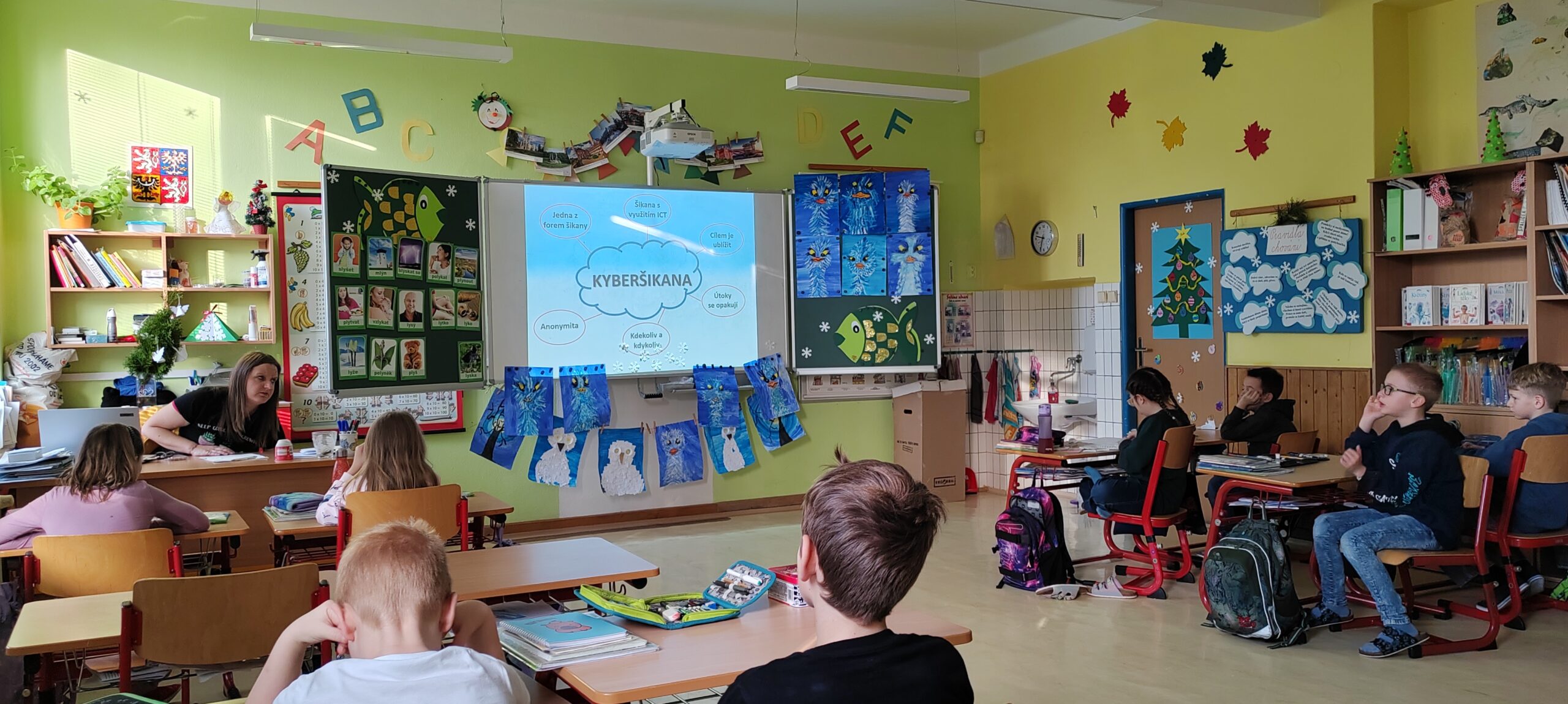 Ve 4. a 5. třídě se uskutečnil preventivní program s příslušníkem Policie ČR zaměřený na velmi aktuální téma kyberšikany. Cílem programu bylo upozornit žáky na rizika, která mohou v online prostředí vznikat. Také jim ukázat, jak se v podobných situacích správně zachovat. Policista žákům vysvětlil, co kyberšikana je, jaké může mít následky, kam se mohou obrátit o pomoc a jak sami mohou být nápomocní.